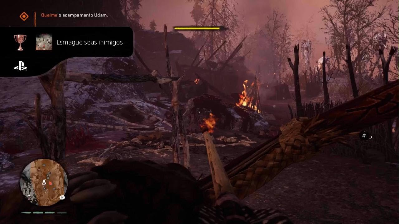 Para quem está progredindo em direção à platina de Far Cry Primal, os 10 Confrontos Tribais chegam de forma completamente orgânica durante a exploração de Oros — é praticamente impossível não cruzar com essa quantidade de eventos ao longo de uma campanha completa. Os confrontos também são uma boa fonte de recursos de crafting, tornando a participação ativa neles vantajosa muito além do troféu.